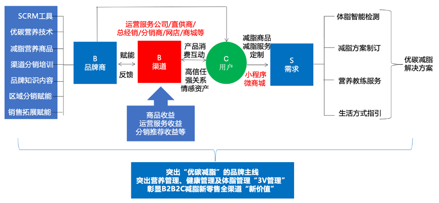 同時,強化B端賦能,大力扶植優(yōu)秀經(jīng)銷商、代理商等,打造強大的B2B2C“減脂新零售”。