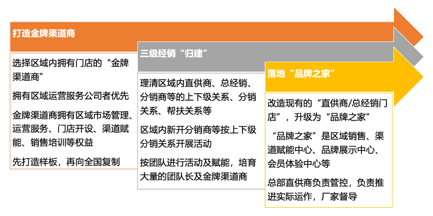 與此同時,打造金牌渠道商,推動“三級經(jīng)銷歸建”,落地“品牌之家”,大大提升渠道凝聚力。