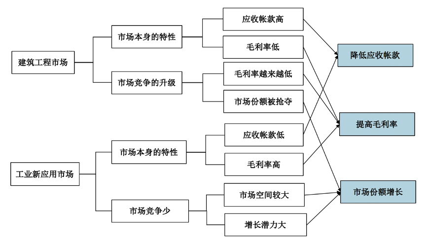 全面深化“建筑工程應用市場”的深度拓展、深度開發及“產品領域領域擴寬”,并避免行業中“應收帳款高和毛利率低”的不良情況,以降低應收帳款、提高毛利率和推動市場份額增長等提升“建筑工程領域”的市場影響力。