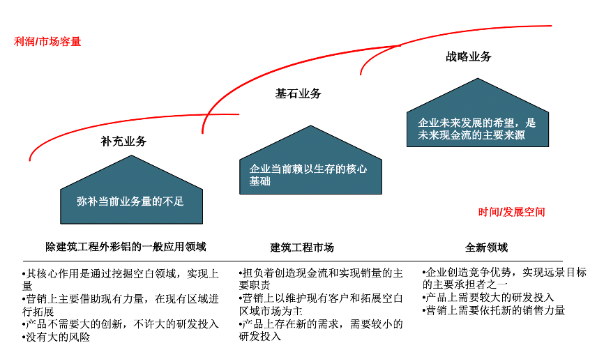 要實現彩鋁行業領導者這一戰略目標,墻煌必須清晰地進行戰略部署,尋找自己的“增長新動能”,明晰最優化的業務增長路徑。我們認為墻煌彼時需要優先解決“過于依賴于建筑工程應用領域”的這一核心問題。