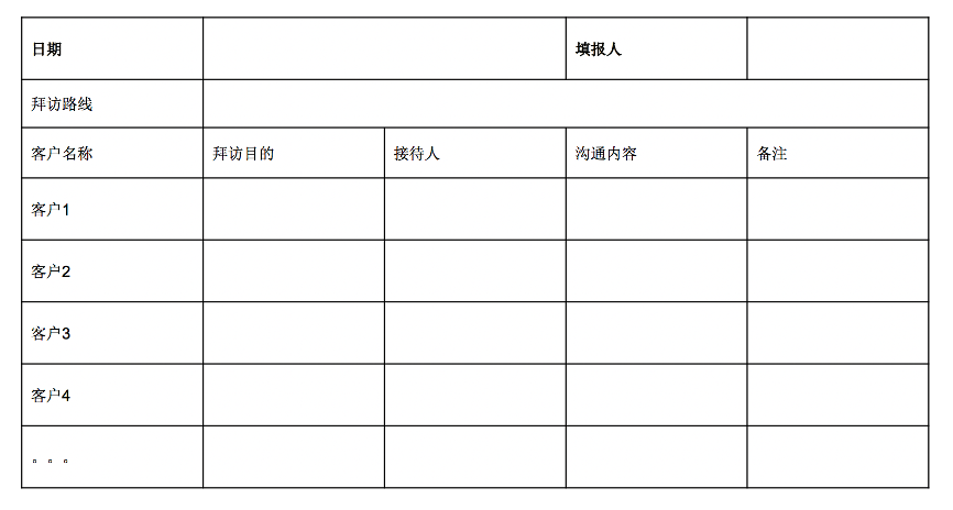 2、發展市場的拓展建議(附)——客戶拜訪表(日報表)