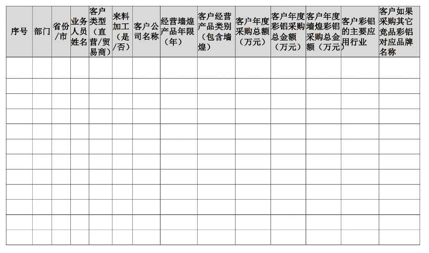 對彩鋁工業品全渠道客戶進行專業化信息管理,對客戶檔案進行及時更新,尤其是彩鋁產品的交易信息、產品類別、采購信息等。