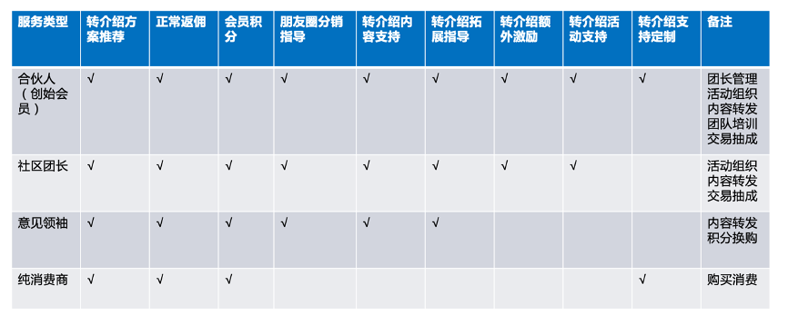 凱爾樂“創(chuàng)意拼搭課”的高會員轉介紹,采用“分合伙人級別”進行“轉介紹激勵”。其對合伙人(創(chuàng)始會員)主要進行轉介紹方案推薦、返傭、會員積分、拓展支持等全方位幫扶,激活其全方位人脈資源;對社區(qū)團長則更多給予返傭、會員積分、資訊轉發(fā)等重點支持。同時積極吸納意見領袖、純消費商,激活會員的內容轉發(fā)、積分換購等,激活合作伙伴的“個體能量”。