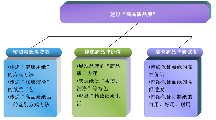 我們認為,在2015年-2017年的三年期內,云景林紙應該強化品牌的影響力,打造優秀的生活用紙品牌,訴求自己的“本土品牌影響力”,建設“高品質品牌”,密切溝通消費者,傳遞“高品質”內涵,持續提升高品牌忠誠度。