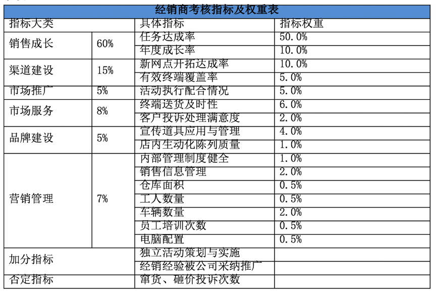 1)五星經銷商篩選時從銷售成長、渠道建設和市場推廣等方面強化指引,賦予各指標以不同權重,尤其強調“銷售成長”的指標權重設置。