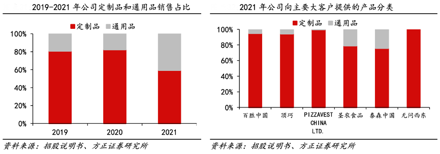 經(jīng)典案例: 根據(jù)招股說(shuō)明書、方正證券研究所等綜合資訊表明,寶立食品定制化程度高,迎合大客戶需求。2019 年和 2020 年,公司收入中超過(guò) 80%均為定制品,說(shuō)明公司定制化程度高,可以為大 B 客戶根據(jù)自身場(chǎng)景量身定制新品,利于提升各大連鎖餐飲品牌推新速度,公司憑借此優(yōu)勢(shì)與客戶建立了長(zhǎng)期穩(wěn)定的 合作關(guān)系。