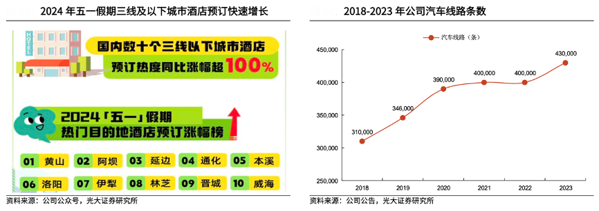 經典案例:根據公司公眾號、公司公告、光大證券研究所等綜合資訊表明,同程旅行公司從 2015 年開始銷售長途汽車票,2022年,公司著重加強布局線下汽車票售賣機。除了獲取新用戶的入口,汽車票亦可以貢獻較高的 take rate(傭金率)。