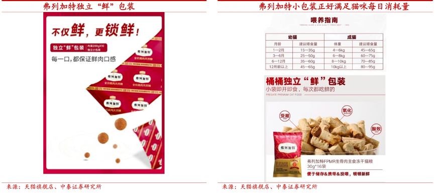 經典案例:根據天貓旗艦店、中泰證券研究所等綜合資訊表明,乖寶寵物通過對貓咪和消費者的細致觀察,發現首先貓的食量相對較小,其次,貓對食物相對挑剔,因此養貓人在買貓糧的時候,相對謹慎。因此給予兩大痛點,公司采用小規格形式對弗列加特系列產品進行包裝。這樣能保證貓咪每次吃到的食物可以充分鎖鮮,不回潮。其次,消費者可以只買一小袋試吃裝進行嘗試,提高了用戶首次購買的破冰概率。