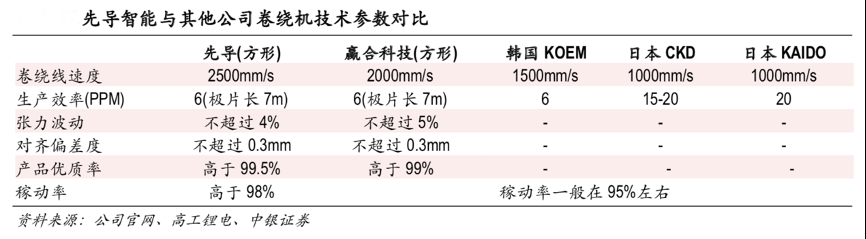 經(jīng)典案例:根據(jù)公司官網(wǎng)、高工鋰電、中銀證券等綜合資訊表明,以鋰電池核心設(shè)備卷繞機為例,先導(dǎo)的設(shè)備能夠?qū)崿F(xiàn)更好的張力控制、糾偏、卷繞精度等,同時在設(shè)備性價比方面顯著優(yōu)于 CKD 等日韓品牌。技術(shù)優(yōu)勢的突出體現(xiàn)為先導(dǎo)智能的卷繞機在 CATL 等全球龍頭公司的份額持續(xù)提升,整體市場占有率超過 50%。
