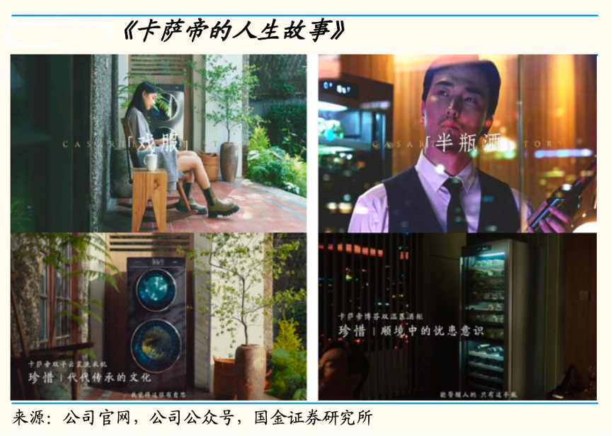 經典案例:根據公司官網、公司公眾號和國金證券研究所等綜合資訊表明,卡薩帝通過新媒體、話題與 IP 將高質量、有創意有內容的營銷方案推出,實現內容持續發酵和引爆。如2019年度其推出的廣告故事片《卡薩帝的人生故事》,采用《戲服》、《半瓶酒》等 6 組人物故事相銜接,一個故事對應一種產品+一個家庭+一種人生品格,此案例斬獲“2019中國數字化營銷金牛獎——最佳內容營銷獎”。
