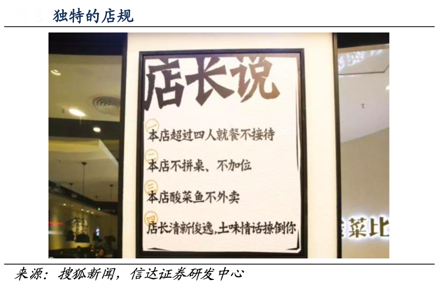 經典案例:根據搜狐新聞、信達證券研發中心等綜合資訊表明,太二通過拒絕拼桌、超過四人就餐不予接待、自助倒水等獨特的店規為門店運營做減法,降低社交屬性從而提升運營效率。同時店規與現餐飲行業的高服務標準形成反差,勾起消費者的好奇心,制造品牌熱度,成功實現反向營銷。