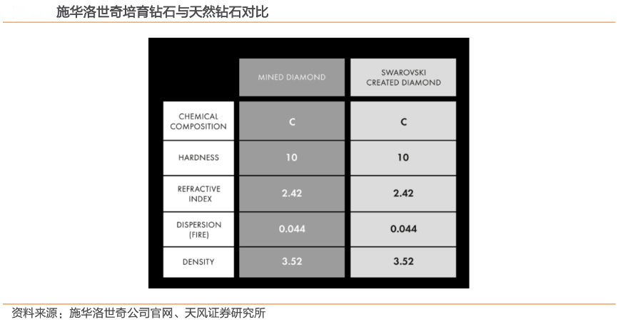經典案例:根據施華洛世奇公司官網、天風證券研究所等綜合資訊表明,施華洛世奇長期以來以生產高質量水晶而聞名,Diama 將其成熟的專業知識和精密切割技術應用入培育鉆石領域。經驗豐富的寶石學家結合大師級確保其卓越品質,所有大于 0.50 克拉的培育鉆石都通過 IGI 認證, 嚴格符合質量標準,鉆石的制造過程完全碳中和。