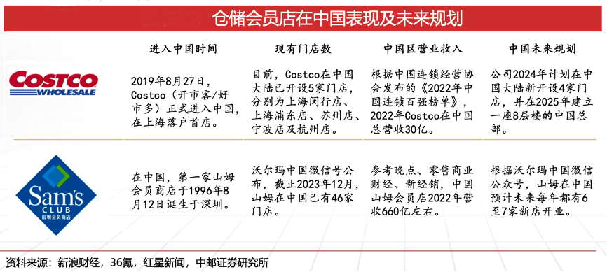 經(jīng)典案例:根據(jù)新浪財(cái)經(jīng)、36氪、紅星新聞、中郵證券研究所等綜合資訊表明,中國成為倉儲會員店龍頭新增長極,Costco和山姆紛紛加碼中國區(qū)布局。山姆于 1996年進(jìn)入中國,發(fā)展至今有46家門店,經(jīng)歷和盒馬的價(jià)格戰(zhàn)后未來將繼續(xù)加大力度布局中國市場。