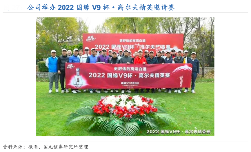 經典案例:根據微酒、國元證券研究所等綜合資訊表明,國緣定位高端,堅持高舉高打。例如,2019 年,新華社民族品牌工程首顆冠名衛 星“國緣 V9”號成功發射;2022 年 8 月,國緣 V9 與國家高爾夫球隊結成合作伙伴, 同年 11 月舉辦“2022 國緣 V9 杯·高爾夫精英邀請賽”,吸引近 800 位精英人士參 與,在高端消費者圈層展開精準營銷。