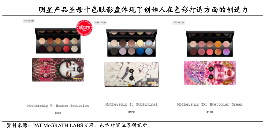 經典案例:根據PAT McGRATH LABS官網、東方財富證券研究所等綜合資訊表明,2015 年,Pat McGrath 正式創(chuàng)立了同名彩妝品牌 “PAT McGRATH LABS”,品牌明星產品“圣母十色眼影盤”的特色在于色彩鮮明、顯色度佳,能夠打造出極具特色的妝容,品牌亦因其特色受到了消費者青睞,2023 年 4 月以 69 億人 民幣的估值入選《2023·胡潤全球獨角獸榜》。