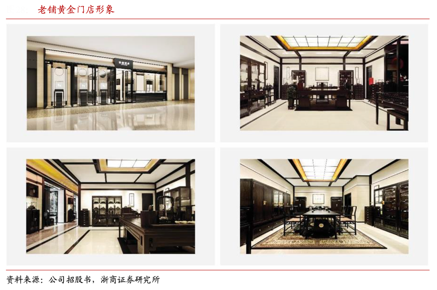 經(jīng)典案例:根據(jù)公司招股書、浙商證券研究所等綜合資訊表明,老鋪黃金所有門店均為自營,其中直營 門店 22 家,聯(lián)營門店 11 家,能夠嚴(yán)格控制服務(wù)質(zhì)量,建立和維護(hù)良好的品牌形象。在門 店體驗(yàn)方面,老鋪黃金通過書房主體場(chǎng)景提供沉浸式的消費(fèi)體驗(yàn),所有門店統(tǒng)一裝修風(fēng)格,呈現(xiàn)出中國傳統(tǒng)文化的意境。