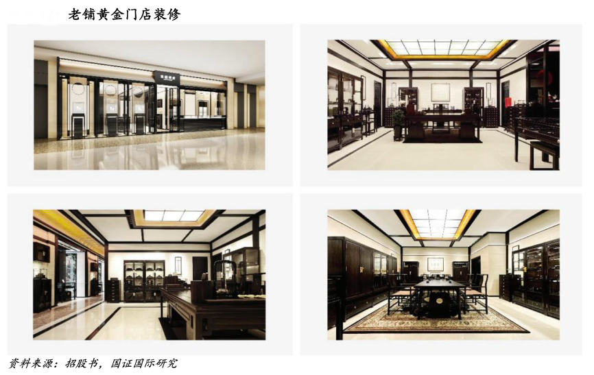 經典案例:根據招股書、國證國際研究等綜合資訊表明,老鋪黃金公司采用「場景化模式」來布置門店,展 示公司的經典產品和品牌文化特征,為消費者提供沉浸式消費體驗。借鑒經典書房特色主題,融合專業客戶服務,更充分地展示經典工藝、經典產品和品牌主題文化。