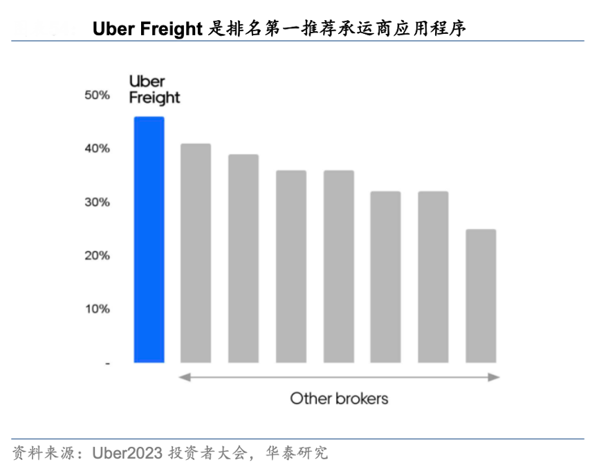 經(jīng)典案例:根據(jù)Uber2023投資者大會、華泰研究等綜合資訊表明,Uber Freight 平臺擁有超過 100 萬司機,相較 2019 年翻了一倍,越來越多的個體駕駛員及小型車隊愿意加入 Uber Freight 平臺,利用其高效的匹配機制和穩(wěn)定的訂單流來提高收入和運營效率。