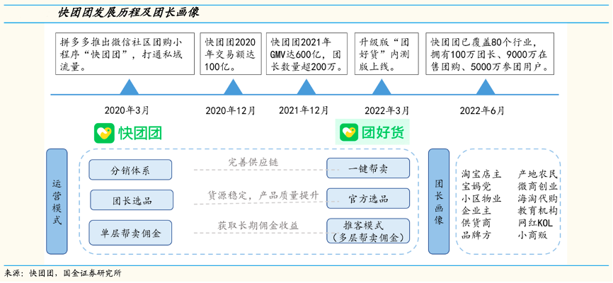 經典案例:根據快團團、國金證券研究所等綜合資訊表明,面對個體團長團購的運營痛點,2022年3月快團團升級版“團好貨”內測版上線,官方選品池提供穩定貨源及供應鏈。