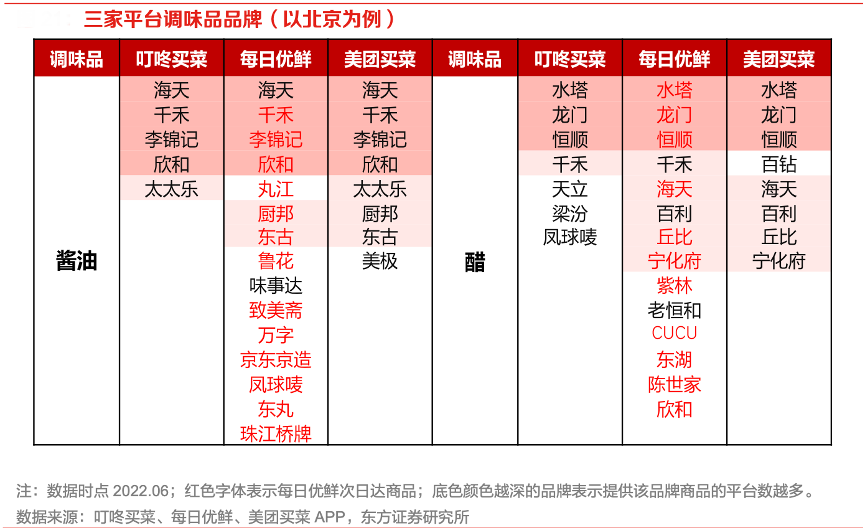 經典案例:根據叮咚買菜、每日優鮮、美團買菜APP、東方證券研究所等綜合資訊表明,叮咚買菜和美團買菜的標品選品多集中在較知名的品牌,且同類型商品下品牌數有所控制。