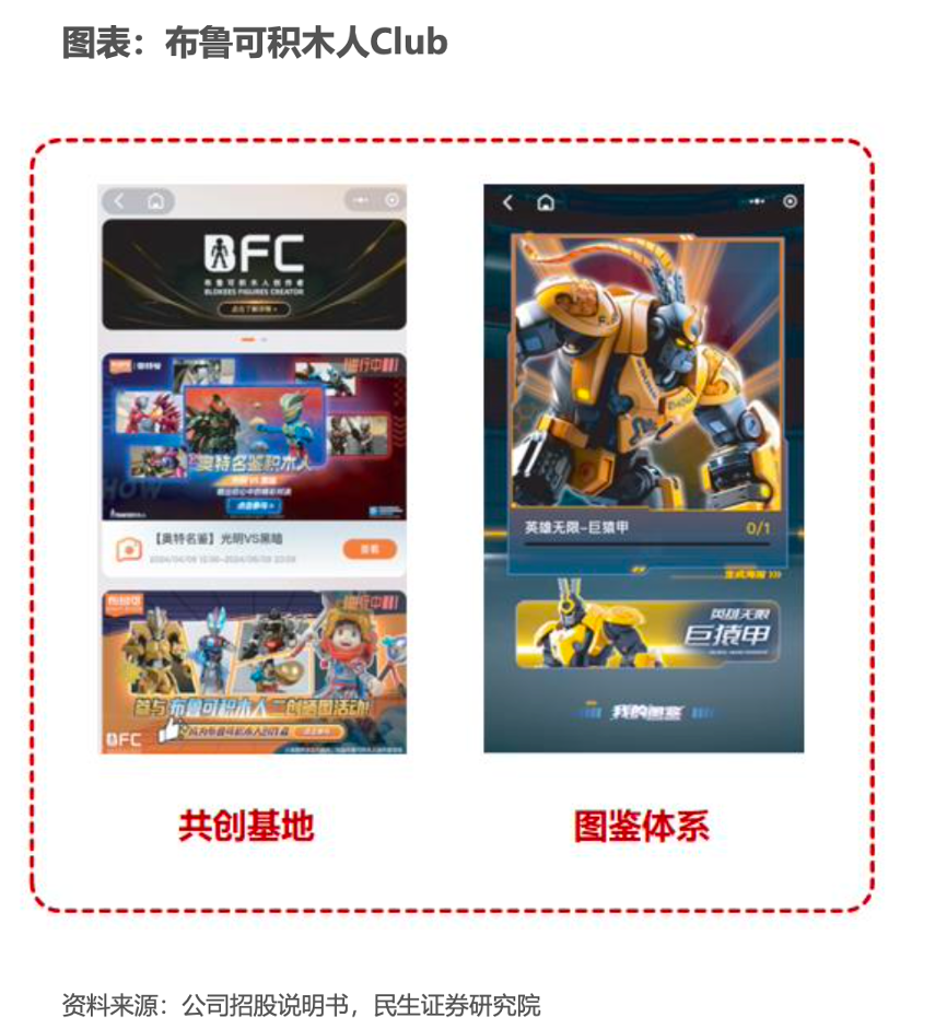 經典案例:根據公司招股說明書、民生證券研究院等綜合資訊表明,布魯可官方通過布魯可積木人Club中的「共創基地」功能舉辦投票活動,鼓勵消費者參與新產品的開發。得票最高的產品提案可能轉化為真正的產品。消費者可通過掃描產品包裝上的二維碼及產品附帶的角色身份卡在布魯可積木人Club上注冊其產品。